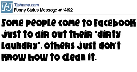- # 20708 thinks people need to quit confusing Facebook with a clothes line. It is not a place to air your dirty laundry.