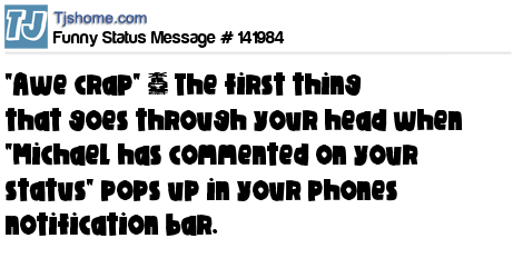 X says "Awe crap" ~ The first thing that goes through your head when "Michael has commented on your status" pops up in your phones notification bar.
