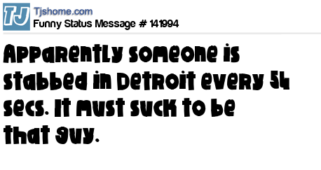 X Apparently someone is stabbed in Detroit every 54 secs. It must suck to be that guy.