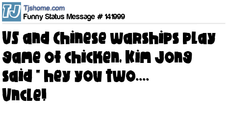 X says US and Chinese warships play game of chicken, Kim Jong said " hey you two.... Uncle!