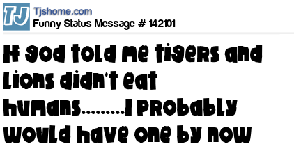 X says If god told me tigers and lions didn't eat humans.........I probably would have one by now