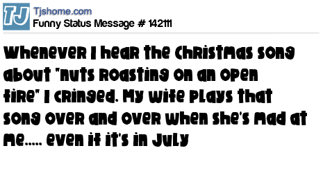 X says Whenever I hear the Christmas song about "nuts roasting on an open fire" I cringed. My wife plays that song over and over when she's mad at me..... even if it's in July