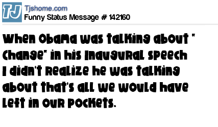 X says When Obama was talking about " Change" in his Inaugural speech I didn't realize he was talking about that's all we would have left in our pockets.