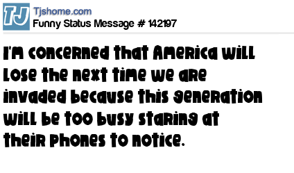 X says I'm concerned that America will lose the next time we are invaded because this generation will be too busy staring at their phones to notice.