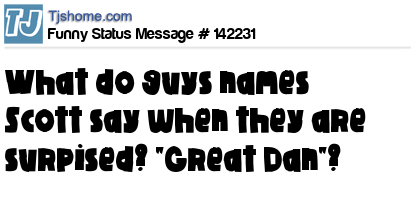 X What do guys names Scott say when they are surpised? "Great Dan"?