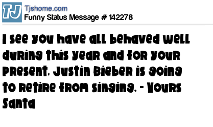 X says I see you have all behaved well during this year and for your present, Justin Bieber is going to retire from singing. - Yours Santa