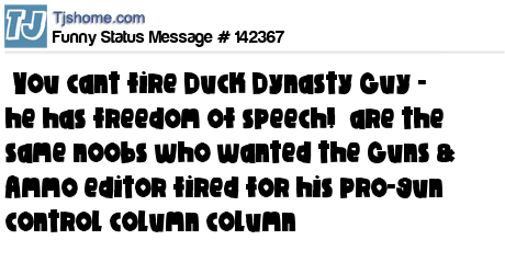 X says ˝You cant fire Duck Dynasty Guy - he has freedom of speech!˝ are the same noobs who wanted the Guns & Ammo editor fired for his pro-gun control column column