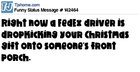 X says Right now a FedEx driver is dropkicking your Christmas gift onto someone's front porch.