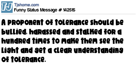 X A proponent of tolerance should be bullied, harassed and stalked for a hundred times to make them see the light and get a clear understanding of tolerance.