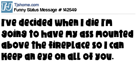 - # 57753 I've made a decision. When I die, I am going to have my butt mounted above the fireplace so I can keep an eye on all of you.
