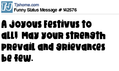 - # 155318 Joyous Festivus to the rest of us. May your feats of strength be superior and your grievances be few.