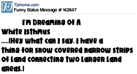 X ♪ ♫ ♩ ♬ I'm Dreaming Of A White Isthmus ♪ ♫ ♩ ♬ .....(Hey what can I say, I have a thing for snow covered narrow strips of land connecting two larger land areas.)