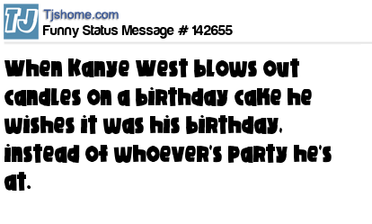 X says When Kanye West blows out candles on a birthday cake he wishes it was his birthday, instead of whoever's party he's at.