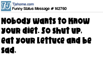 X says Nobody wants to know your diet. So shut up, eat your lettuce and be sad.