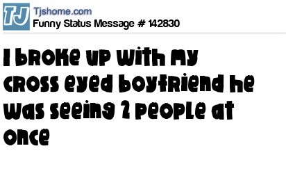 - # 73283 Broke up with my crossed eyed boyfriend.. because he was seeing other people.