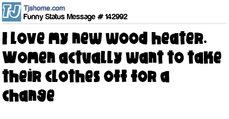 X says I love my new wood heater. Women actually want to take their clothes off for a change