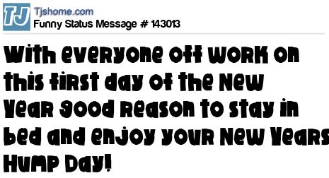 X says With everyone off work on this first day of the New Year good reason to stay in bed and enjoy your New Years Hump Day!