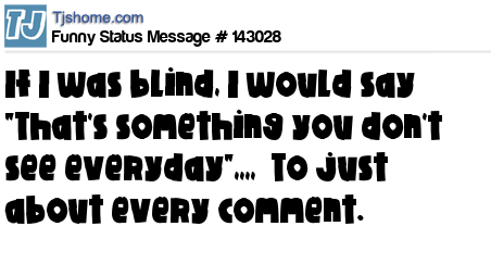 X If I was blind, I would say "That's something you don't see everyday",,,, To just about every comment.