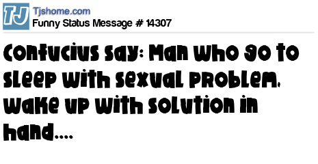 - # 23084 Confucius says "Boy who goes to bed with sex problem wake up with solution in hand."
