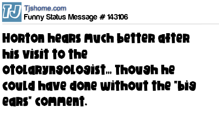X Horton hears much better after his visit to the otolaryngologist,,, Though he could have done without the "big ears" comment.
