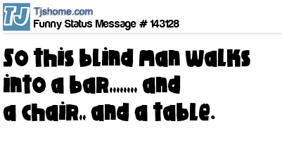 - # 166667 Blind man walks into a bar.... And a table, and a chair.