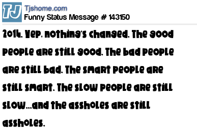 X 2014. Yep, nothing's changed. The good people are still good. The bad people are still bad. The smart people are still smart. The slow people are still slow...and the assh0les are still assh0les.