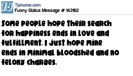X says Some people hope their search for happiness ends in love and fulfillment, I just hope mine ends in minimal bloodshed and no felony charges.