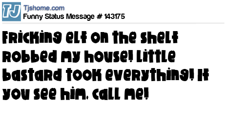 X says fricking elf on the shelf robbed my house! Little bastard took everything! If you see him, call me!