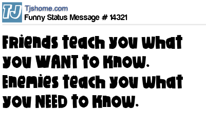 X says Friends teach you what you WANT to know. Enemies teach you what you NEED to know.