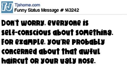 X says Don't worry, everyone is self-conscious about something. For example, you're probably concerned about that awful haircut or your ugly nose.