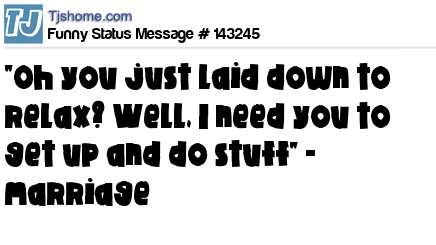 X says "Oh you just laid down to relax? Well, I need you to get up and do stuff" - marriage