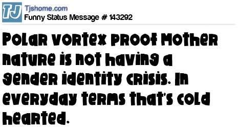 X says Polar vortex proof Mother nature is not having a gender identity crisis. In everyday terms that's cold hearted.