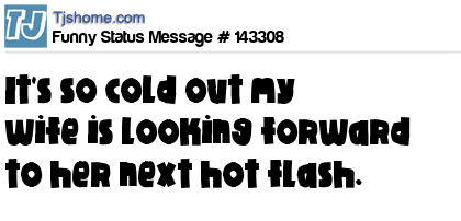 - # 163296 It is so cold out my wife is looking forward to her next hot flash.