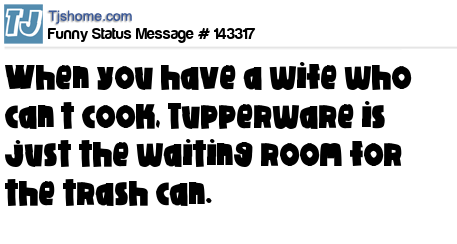 X says When you have a wife who can’t cook, Tupperware is just the waiting room for the trash can.
