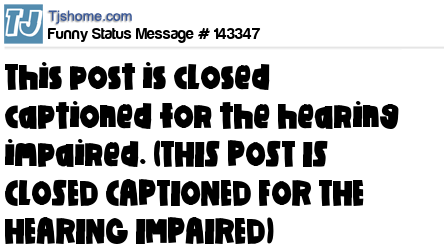 - # 106592 Since when did these all reality shows start using hearing impaired captions for all their daily drama?? Oh wait, my bad. I logged onto Facebook.