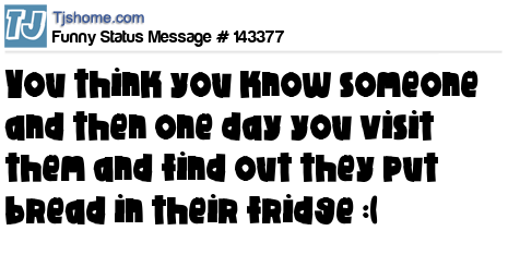X says You think you know someone and then one day you visit them and find out they put bread in their fridge :(