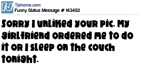 X says Sorry I unliked your pic. My girlfriend ordered me to do it or I sleep on the couch tonight.
