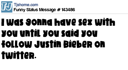 X says I was gonna have sex with you until you said you follow Justin Bieber on twitter.