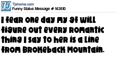 X says I fear one day my gf will figure out every romantic thing I say to her is a line from Brokeback Mountain.