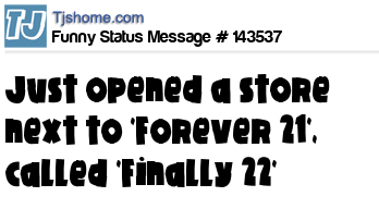 - # 98784 I'm going to open a store next to FOREVER 21 and call it "FINALLY 22".....
