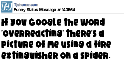X says If you Google the word 'overreacting' there's a picture of me using a fire extinguisher on a spider.