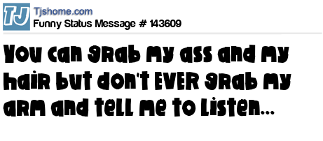 X says You can grab my ass and my hair but don't EVER grab my arm and tell me to listen...