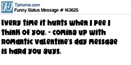 X says Every time it hurts when I pee I think of you. - coming up with romantic valentine's day message is hard you guys.