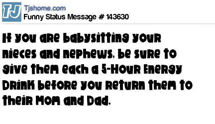 - # 154348 If you ever get stuck babysitting your nieces and nephews, be sure to give them each a 5-Hour Energy Drink before you give them back to Mom and Dad.