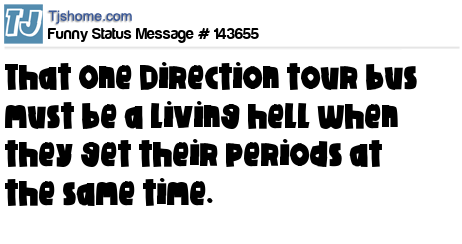 X That One Direction tour bus must be a living hell when they get their periods at the same time.