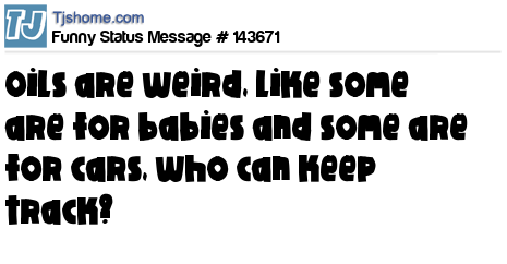 X says Oils are weird, like some are for babies and some are for cars, who can keep track?