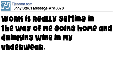 X says Work is really getting in the way of me going home and drinking wine in my underwear.