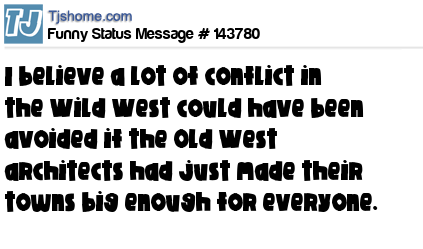 - # 162268 I think that a lot of conflict that happened in the Wild West could've been avoided had architects in those days just made their towns big enough for everyone.