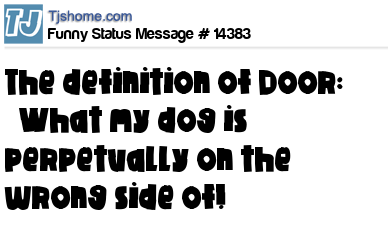 X says the definition of Door: What my dog is perpetually on the wrong side of!