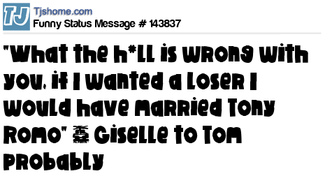 X says "What the h*ll is wrong with you, if I wanted a loser I would have married Tony Romo" ~ Giselle to Tom probably